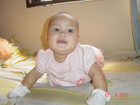 Cuma satu.. anak dara Mama ni, memang susah betul nak senyum... tapi kalau senyum, nampak lah lesung pipit (yup, trademark mama lah tu!!!) yang di sebelah kanan..... walaupun pipi tembam! hee hee hee